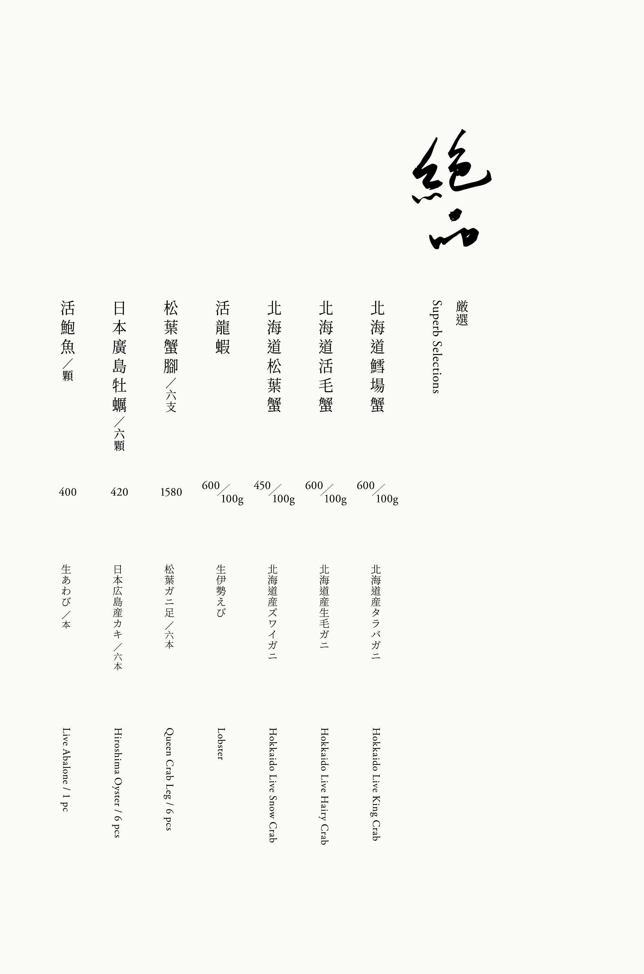 海鮮 – 澳洲天鵝龍蝦、日本扇貝、台灣白蝦、澎湖小卷、極鮮蛤蜊